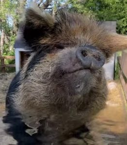 Meet the charming Pig, a beautiful and gentle soul in search of a loving family to share her life with. This delightful pig exhibits a sweet nature and an unexpected persona. She is very friendly and sociable, thriving on companionship and interaction. Interestingly enough, Pig has developed a personality similar to that of a canine; she enjoys being around humans.